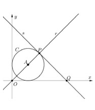 A circunferência C na figura ao lado está centrada no ponto A = (1,1) e tangencia os eixos coordenados. A reta r passa pela origem 0 e pelo ponto A , intersectando a circunferência no ponto P , conforme indica a figura. A reta s é tangente à circunferência no ponto P e intersecta o eixo x no ponto Q . Assinale a alternativa que corresponde à abcissa do ponto Q .