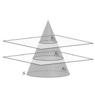 Um cone circular reto S é dividido por dois planos paralelos à sua base, formando três sólidos S 1, S 2 e S 3, conforme a figura ao lado. Os volumes de S 1, S2 e S 3, nessa ordem, estão em progressão geométrica com razão q > 1. O quociente entre o raio do cone S e o raio do cone menor S 1 é igual a 3√7 . Assinale a alternativa que corresponde à razão q .