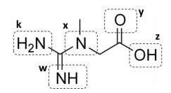 A creatina é um composto produzido a partir de alguns aminoácidos (glicina, arginina, metionina) e é um suplemento recomendado para o aumento da força e da massa muscular. Sua estrutura química é apresentada a seguir: