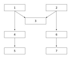 O fato de cloroplastos e mitocôndrias partilharem muitas similaridades, apesar de desempenharem funções distintas, sustenta a ideia de que essas duas organelas descendem de seres procarióticos que entraram em células nucleadas primitivas. Considerando as informações apresentadas, assinale a alternativa que relaciona corretamente os termos ciclo de Krebs, coenzima A, clorofila, cloroplastos, fotossíntese, hipótese endossimbiótica e mitocôndrias ao diagrama apresentado a seguir: