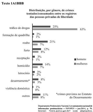 A partir das informações contidas no texto 1A1BBB, julgue os seguintes itens. I A categoria “homicídios” não abrange pessoas condenadas por tentativa de homicídio; essas estão incluídas na categoria “outros”. II Conclui-se dos dados que mulheres não praticam violência doméstica. III Conforme os dados, a maior parte da população carcerária brasileira responde por crime relacionado ao tráfico de drogas. Assinale a opção correta.