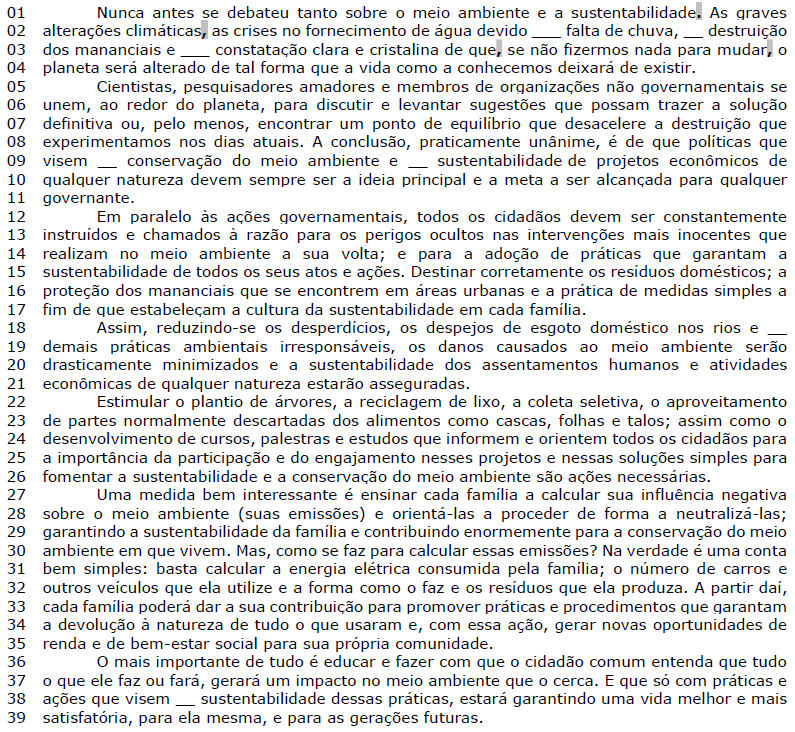 I. A substituição de ações (l. 12) por atos implicaria alteração na estrutura da frase. II. A supressão de ambiente (l.19) criaria as condições para o uso da crase antes desse vocábulo. III. A palavra natureza (l. 34) ao ser substituída por meio ambiente provocaria a necessidade concomitante de supressão do artigo feminino e inserção do masculino; havendo, portanto, alteração na estrutura do termo a que pertence.
