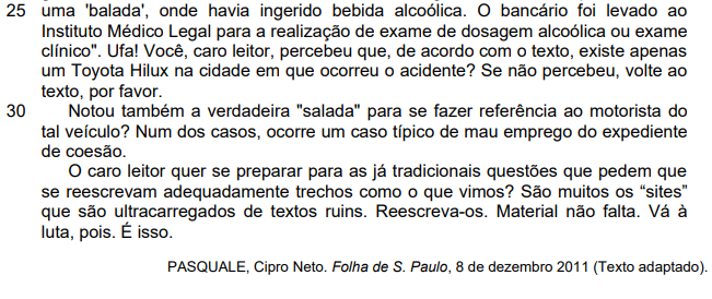 “A coesão se ocupa essencialmente da ‘costura’ do texto, o que inclui, por exemplo, o emprego de termos que conectam as partes (uma palavra que retoma ou substitui