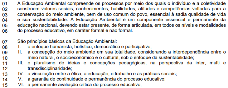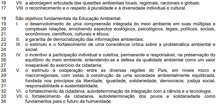 A 1. Princípios da Educação Ambiental 2. Objetivos da Educação Ambiental