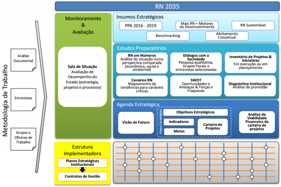 A figura a seguir, representativa do processo de elaboração do Planejamento Estratégico do Governo do Estado do Rio Grande do Norte, servirá de base para a questão.