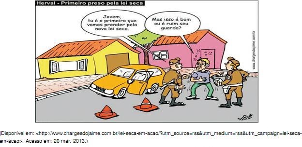 Com relação à charge e à Lei Seca, considere as afirmativas a seguir.