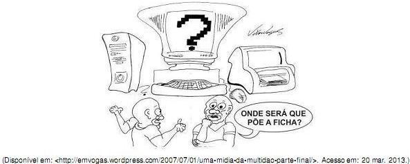 Tendo como referência a charge e o tema da inclusão digital, considere as afirmativas a seguir.
