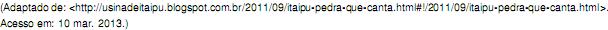 Sobre a Usina de Itaipu, considere as afirmativas a seguir.
