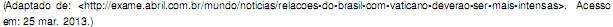 Sobre a recente eleição do Papa e as relações do Brasil com o Vaticano, considere as a?rmativas a seguir.