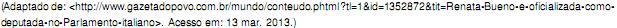 A ex-vereadora de Curitiba Renata Bueno foi o?cializada como deputada do Parlamento italiano nesta