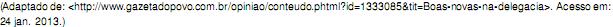 (Adaptado de: RIBEIRO, B.; VALLE, C. do; MENDES, V. Começa a valer tolerância zero de álcool no trânsito. O Estado de S. Paulo. São Paulo, 30 jan. 2013. Cidades. C8.)