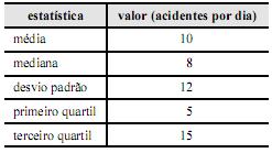 Segundo o coeficiente de assimetria de Pearson, a distribuição desse número diário de acidentes apresenta assimetria negativa.