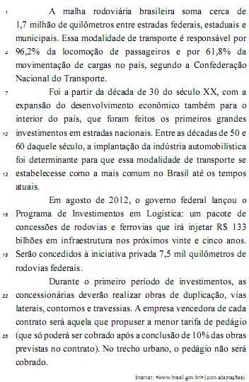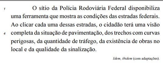 No trecho “o cidadão terá uma visão completa da situação de pavimentação, dos trechos com curvas perigosas, da quantidade de tráfego, da existência de obras no local e da qualidade” (L.3-6), o emprego de preposição e de artigo definido em “dos” e “da” constitui recurso de paralelismo sintático exigido pela regência de “visão” e pela concordância com os complementos.