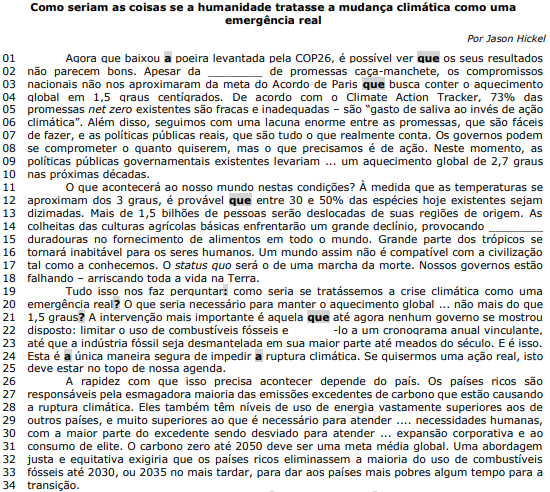 (Disponível em: https://climainfo.org.br/2022/11/22 – texto especialmente adaptado para esta prova).