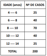 ( ) A incidência de casos com crianças com idade inferior a 8 anos foi de 32,50%.