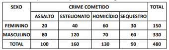 Considere o levantamento realizado em um presídio com 480 detentos, por meio do qual se obteve o seguinte resultado:
