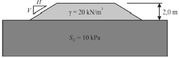 A figura precedente representa um aterro muito utilizado na construção de rodovias ou ferrovias, executado com inclinação desconhecida, sobre um maciço uniforme e homogêneo. Nesse tipo de construção, a altura crítica (HC) é expressa pela equação