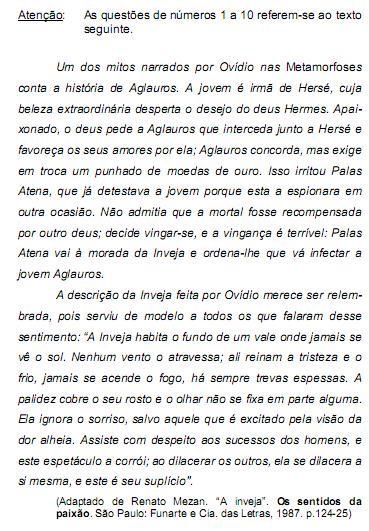 II. A importância do mito de Aglauros deriva do fato de que, a partir dele, se explica de maneira coerente e lógica a origem de um dos males da personalidade humana.