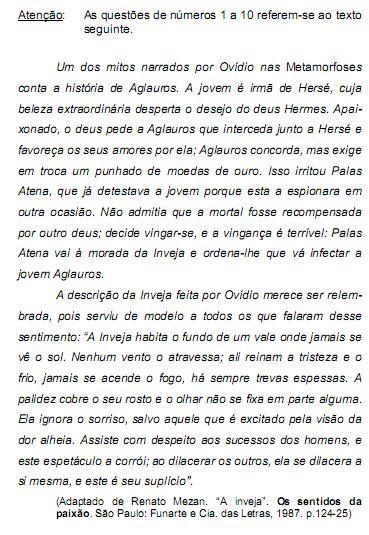 I. De acordo com o contexto, os pronomes grifados acima se referem, respectivamente, à atitude de Aglauros e a Palas Atena.