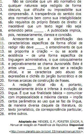 ( ) As palavras publicidade (L. 8) e entendimento (L. 12) apresentam sufixos que formam substantivos a partir de verbos.