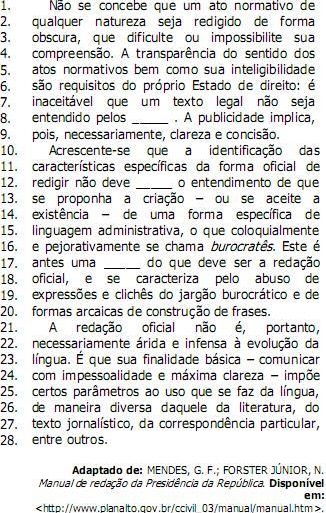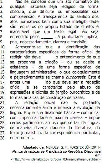 ( ) A palavra inaceitável (L. 7) contém o mesmo prefixo que a palavra impessoalidade (L. 24).