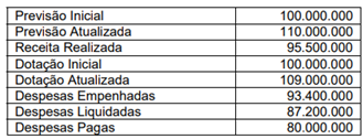 Considerando os saldos apresentados, as determinações da Lei nº 4.320/1964 e a atual estrutura do Balanço Orçamentário segundo o MCASP (11ª edição), assinale a alternativa correta .