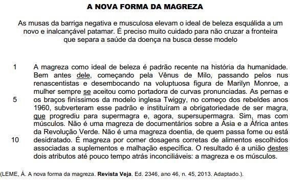 I. “dele” (linha 2) refere-se a “padrão ideal de beleza”.
