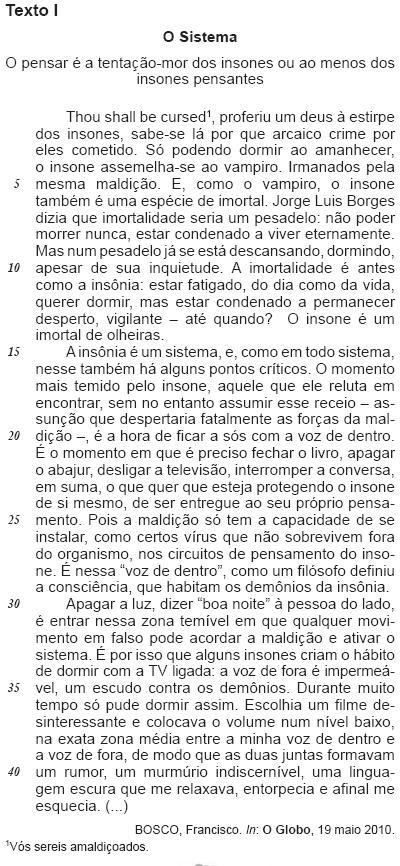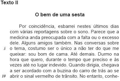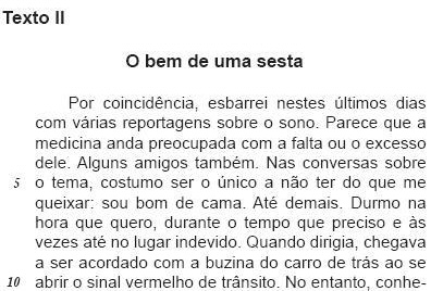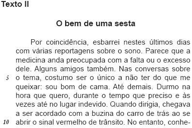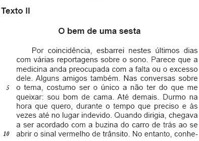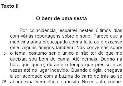 II - "Durmo na hora que quero, durante o tempo que preciso e às vezes até no lugar indevido." (L. 6-8)