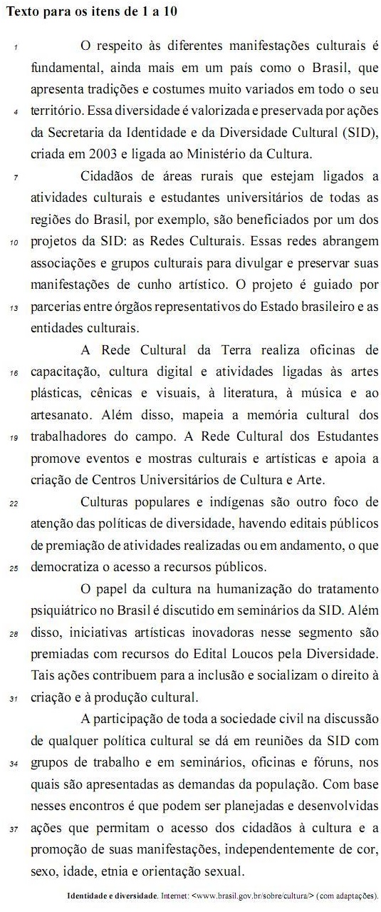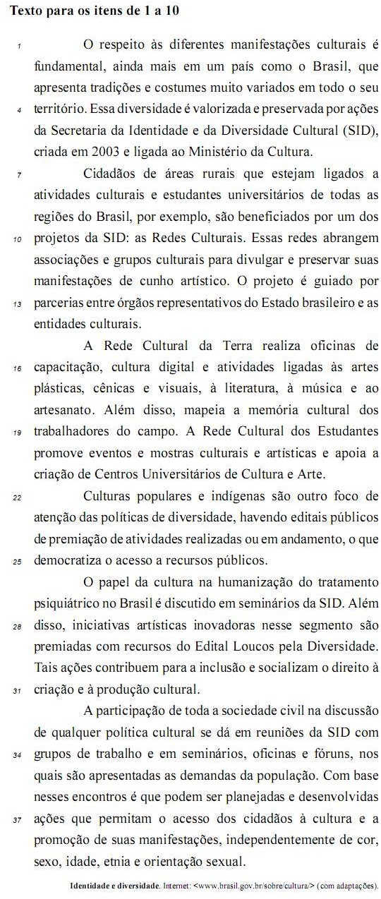 Mantêm-se as informações originais e a correção gramatical do texto caso o primeiro parágrafo seja assim reescrito:Em 2003, ligada ao Ministério da Cultura, com a finalidade de preservar e de valorizar as diferentes manifestações culturais, principalmente no Brasil, que têm tradições e costumes diversos, foi criada a Secretaria da Identidade e da Diversidade Cultural (SID).