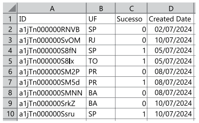 Um usuário abriu um arquivo com extensão CSV (separado por vírgulas) no Microsoft Excel 365, em sua configuração padrão, conforme seu formato apresentado a seguir, que contém apenas uma planilha, a Planilha1.