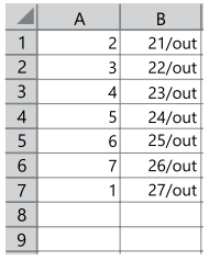 Ao inserir a função =DIATRABALHOTOTAL(B1;B7;B5:B6) na célula A9, o resultado será: