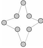 Suponha que, na figura abaixo, os círculos representem nós de uma rede de comunicação e as linhas representem enlaces de comunicação. Nesse caso, é correto afirmar que a figura reproduz, em esquema, uma rede com topologia em anel.