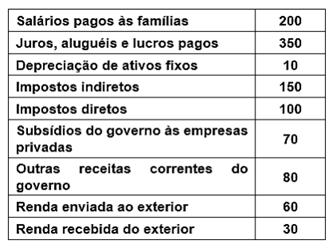 Considere os seguintes dados sobre uma economia aberta e com governo (em milhões de reais):
