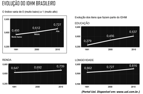 I. A educação é o grande problema brasileiro no que diz respeito à melhoria de Índice de Desenvolvimento Humano Municipal (IDHM), já que mantém os menores índices, abaixo, inclusive, do IDHM geral do Brasil.