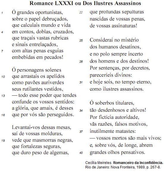 No poema, que apresenta uma denúncia de atos de abuso de poder, foram utilizados os seguintes recursos que permitem que a poeta se dirija diretamente a um interlocutor: emprego de vocativo nos versos 1, 9 e 33 e de verbos na segunda pessoa do plural, todos no imperativo afirmativo.