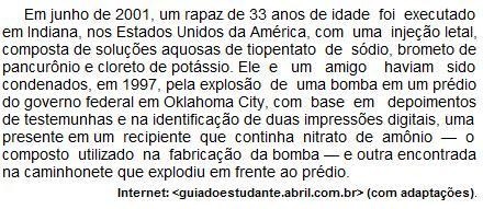 Considerando as informações do texto acima e sabendo que as massas molares do K e do Cl são, respectivamente, 40 g•mol–1 e 35 g•mol–1 , julgue os itens a seguir.