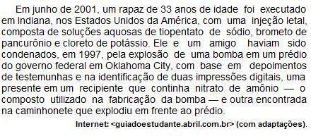 Considerando as informações do texto acima e sabendo que as massas molares do K e do Cl são, respectivamente, 40 g•mol–1 e 35 g•mol–1 , julgue os itens a seguir.
