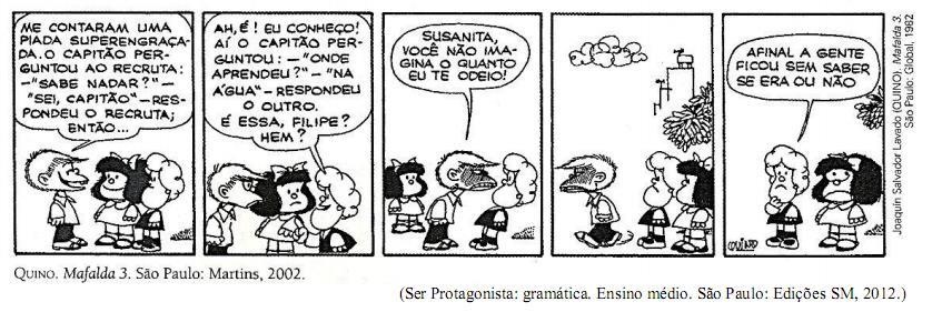 A respeito da tira, analise as afirmativas.