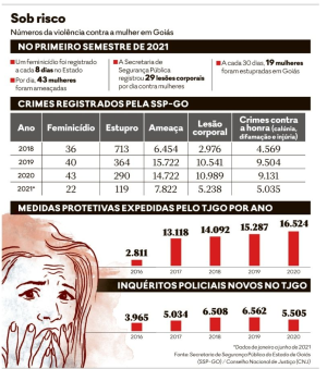 Disponível em: https://www.opopular.com.br/noticias/cidades/goi%C3%A1s-teve-29-agress%C3%B5es-contra-mulher-por-dia-no-primeiro-semestre-1.2283844#. Acesso em: 20 out. 2021.