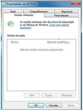 No Sistema Operacional Microsoft Windows 7, ao clicar com o botão direito do mouse sobre a pasta “DETRAN" e selecionar a opção propriedades, é exibida a seguinte tela: