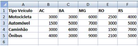 Observe a planilha produzida com a ferramenta Microsoft Office Excel 2007 (configuração padrão).