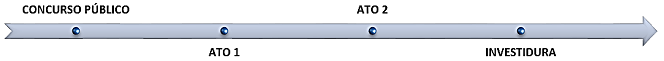 A linha do tempo a seguir ilustra o resumo de uma das formas de provimento de cargo de carreira ou isolado, de provimento efetivo, que depende de prévia habilitação em concurso público de provas ou de provas e títulos, obedecidos a ordem de classificação e o prazo de sua validade.