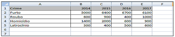 Considere a planilha produzida com a ferramenta Microsoft Office Excel 2007 (configuração padrão).