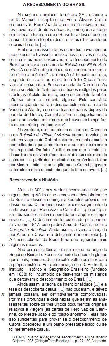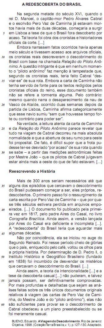 “A ‘redescoberta’ do Brasil teria que aguardar mais algumas décadas.” (L. 44-45)
