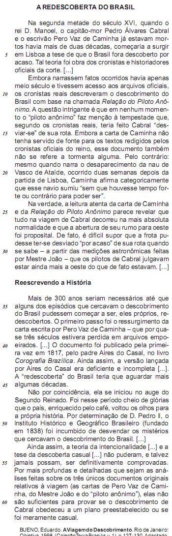 “Mais de 300 anos seriam necessários até que alguns dos episódios que cercavam o descobrimento do Brasil pudessem começar a ser, eles próprios, redescobertos” (L 34-37)
