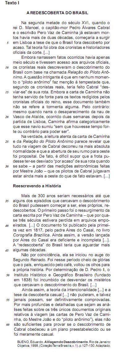 “[... ] a tese de que o Brasil fora descoberto por acaso” (L. 5-6).