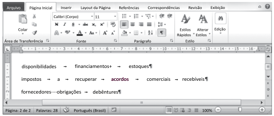 Observe as palavras digitadas e formatadas no MS-Word 2010, na sua configuração padrão.