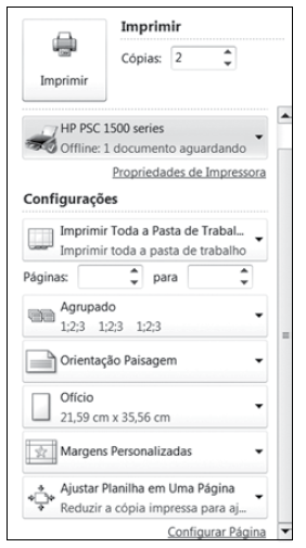 Considerando os parâmetros de impressão aplicados em toda a pasta de trabalho, assinale a alternativa que contém a quantidade de folhas que serão impressas, assumindo que o conteúdo de cada planilha cabe em uma página e que a impressora está alimentada com papel Ofício.