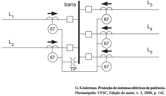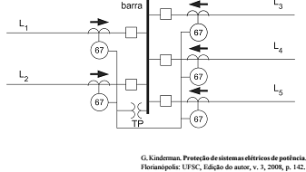 O esquema apresentado visa proteger a barra utilizando-se do sistema de comparação direcional, que é implementado por meio de relés direcionais de sobrecorrente.