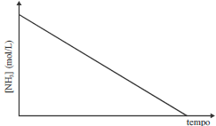 O processo de Haber-Bosh, que opera em altas temperaturas e altas pressões, é bastante utilizado para a produção industrial da amônia (NH3). Nesse processo, os gases nitrogênio (N2) e hidrogênio (H2) reagem exotérmica e reversivelmente para formar amônia gasosa (NH3). No processo inverso, a reação de decomposição da amônia em nitrogênio e hidrogênio em superfície de platina apresenta cinética que segue comportamento conforme representado no gráfico acima, que mostra a variação da concentração molar da amônia gasosa [NH3] em função do tempo. Acerca dessas reações, julgue o item a seguir. A partir do gráfico, é correto concluir que a reação envolvida é de ordem zero e que o módulo do valor da inclinação da reta representa a constante de velocidade da reação de consumo da amônia.